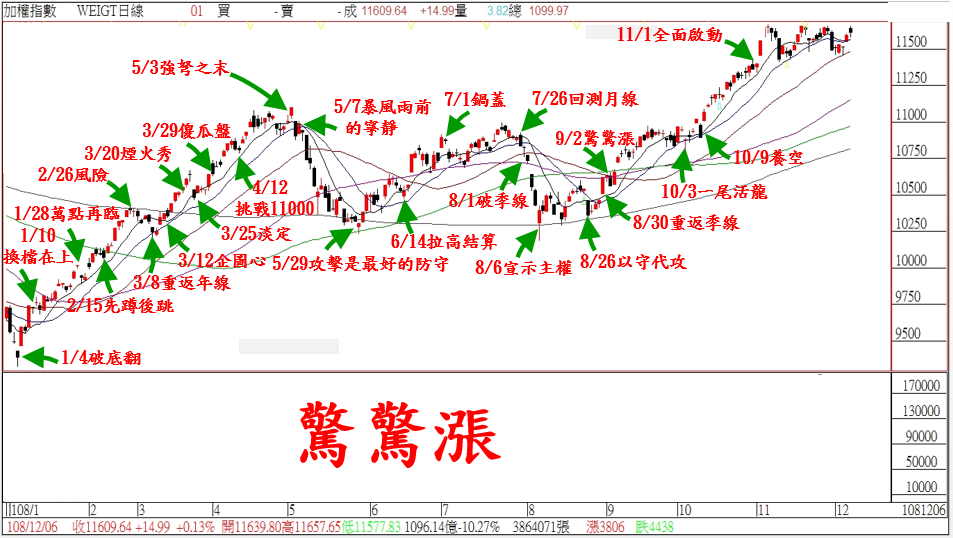 雖然本周『貿易戰』利空滿天飛,不過加權指數如同我們規劃一樣…『挑戰11668』!!雖然今天僅差10點,就要再度改寫29年新高;但是在高價權值股大立光及聯發科的壓抑,還是沒有成功。不過,雖然今天沒有創高,但不必表示多方攻擊結束。從今天的籌碼面的結構看,權值股比較像是結構調整;資金開始向高價股流向低價股,再來外資期、現貨部位也再度同步加碼。顯示目前外資的多方相對積極,只是受到目前台股呈現量縮情況;因此,展望下周盤勢,預料創高不是問題…只是空間的部份,預計會偏向『驚驚漲』結構。