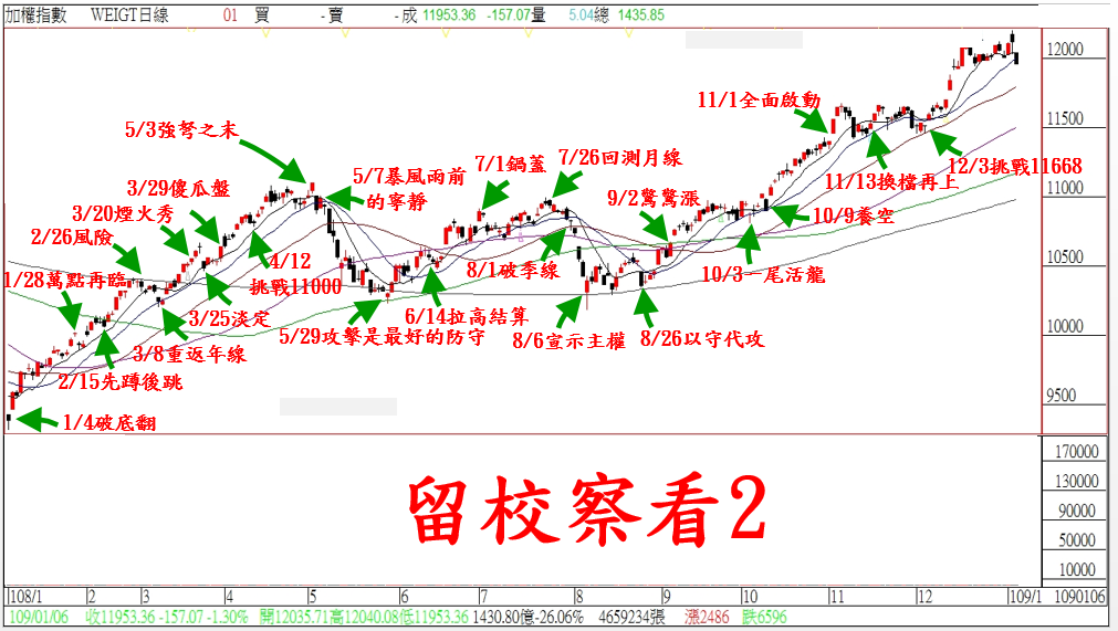 受到『美伊大戰』一觸即發,台北股市今天下跌-74點開出,在權值股的壓抑下;加權指數開低走低,終場大跌-157點作收,收在11953點,成交量1435億。