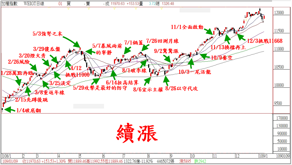 台股今天果然大漲,一如我們昨天說的…台股出現加速測底的表現,多方也開始出現『攻擊性買盤』,再加上外資今天期貨一天大增6千多單。顯示動向不明的外資出手了,預估美國如果沒有進一步動作;指數可望開始強彈,短期重返12000點大關。今天一口氣大漲+153點,盤後也僅差8點,就重返12000點大關;只是在大漲過後…投資人不免還是會問:『彈完了嗎?!』。從今天量能僅1千三百多來看,再加上今天期貨市場走勢;研判第一階段的『報復性強彈』尚未結束,明天可望『續漲』!!
