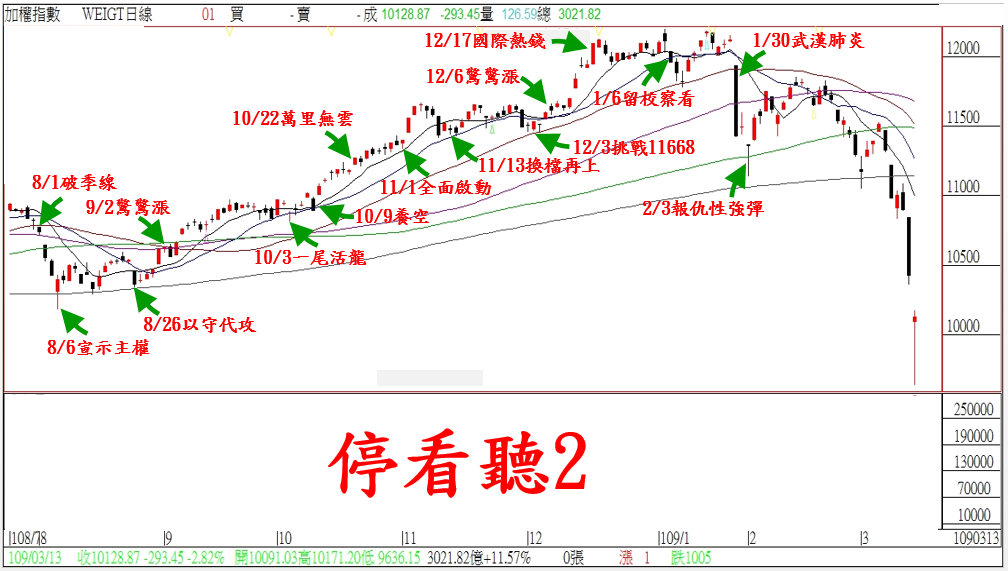 總觀本周的台股,在『消息面』不斷的引爆下;全球股市全面崩跌。10800-11000的『灘頭堡』,再告失敗後;讓短線多頭反轉倒貨下,形成恐荒多殺多。不過,雖然市場的情緒很悲觀,但是從籌碼的結構來看;台北股市依舊還是『壓縮』的狀態。也就是目前台股雖然會有報仇性強彈的機會,但是在『消息面』尚未淡化前,短線建議投資朋友還是『停看聽』;等待下周指數站穩10200點後,方可開始進行下一階段的操作。