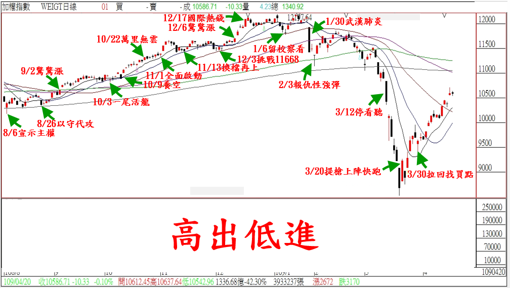 上週給大家操作上的建議,還是老話一句…『拉回找買點』!本週台股小幅拉回,武傑已帶領家族進場,指數點位上武傑不過度預期,畢盡上面還有季線、半年線、年線的壓力,所以指數適度的修正並非壞事,休息是為走更長遠的路,而震盪的盤勢,大家要把握住個股低進的機會,武傑給大家的建議是採『高出低進』的方式;而目前全球都還籠罩在新冠疫情的陰霾下,投資人尤如驚弓之鳥,隨時有個市場消息,大家就會隨市場消息擺盪,但家族會員不用擔心,武傑會運用自身專業,幫大家趨吉避凶,我們一檔一檔賺進口袋!