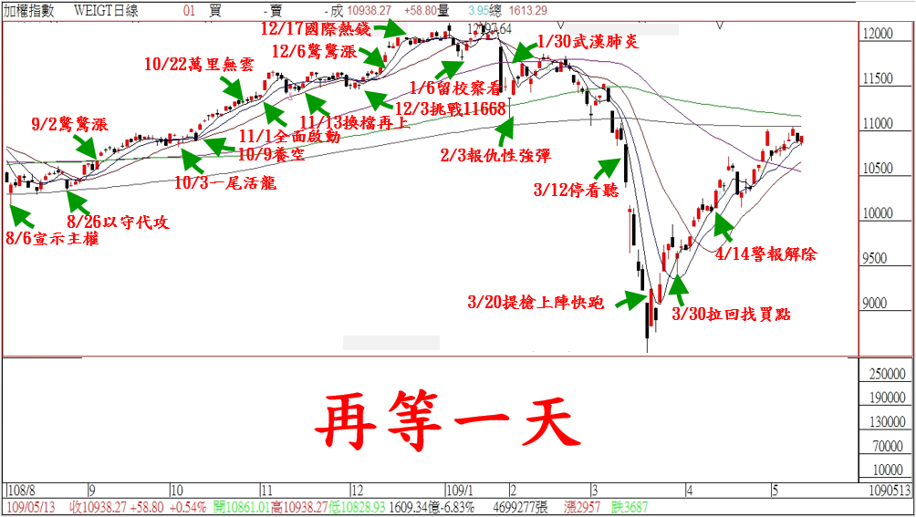 受到美股全面重挫下,台股早盤下跌-18點開出,指數狹幅震盪後;10點買盤轉強,加權指數震盪走高,終場上漲+58點作收,收在10938點,成交量1613億。