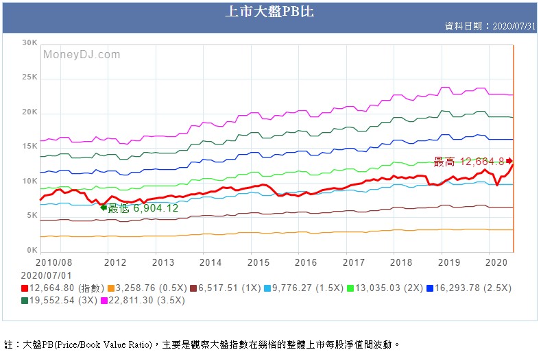 2.從大盤的PB接進2數據來看,台股明顯進入過熱區,儘管未有立即崩盤反轉的跡象,但是風險意識提高是必須的。(資訊來源:MONET DJ)