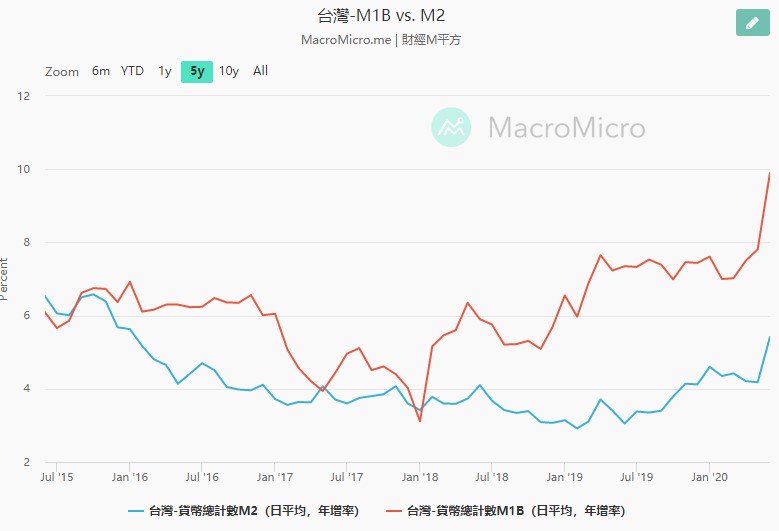1.從貨幣數據M1B與M2來看,台灣短線市場資金動能仍強,因此就算出現修正,仍然偏多思考是比較正確的。