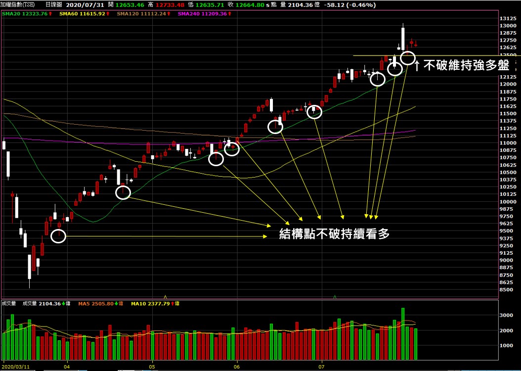 「雖然看總經狀況我心態是很偏空的,但是原則一樣,線圖告訴你甚麼,就做甚麼,因此在大盤轉弱前,持續做多就對了。」