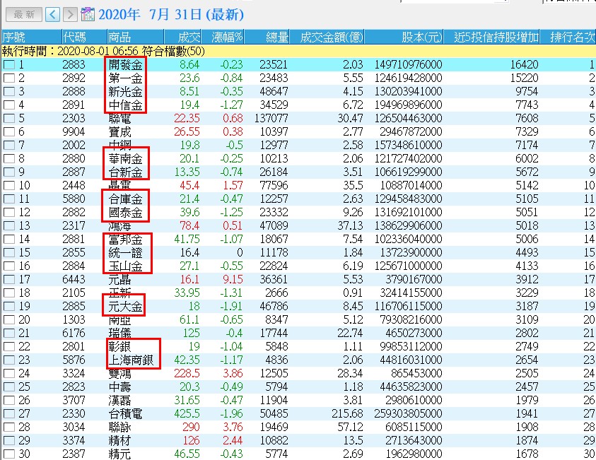 本週將投信買超前30名,放進公開版讓大家一起看資金流向哦。