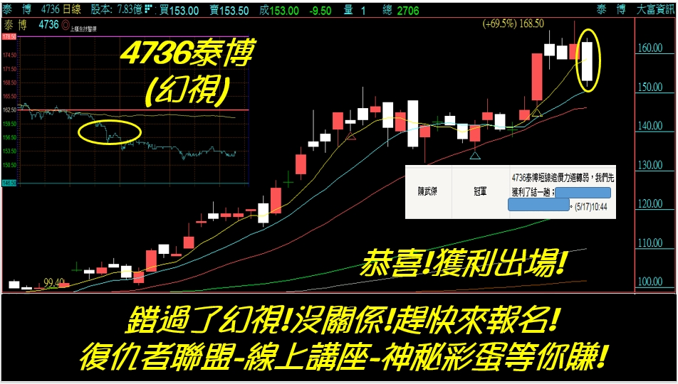 武傑依舊給大家信心,認為多頭還沒結束,震盪難免都會,但投資朋友別擔心,盤勢最即時的狀況武傑會適時在LINE@家族給大家一些看法與提醒,今天也在LINE@家族中持續贈送最新資料-復仇者聯盟,有興趣的朋友歡迎索取!而今天也可以再line@家族或武財神陳武傑FB粉絲頁報名復仇者聯盟-線上講座!線上講座中的台股-神秘彩蛋您一定要知道喔!