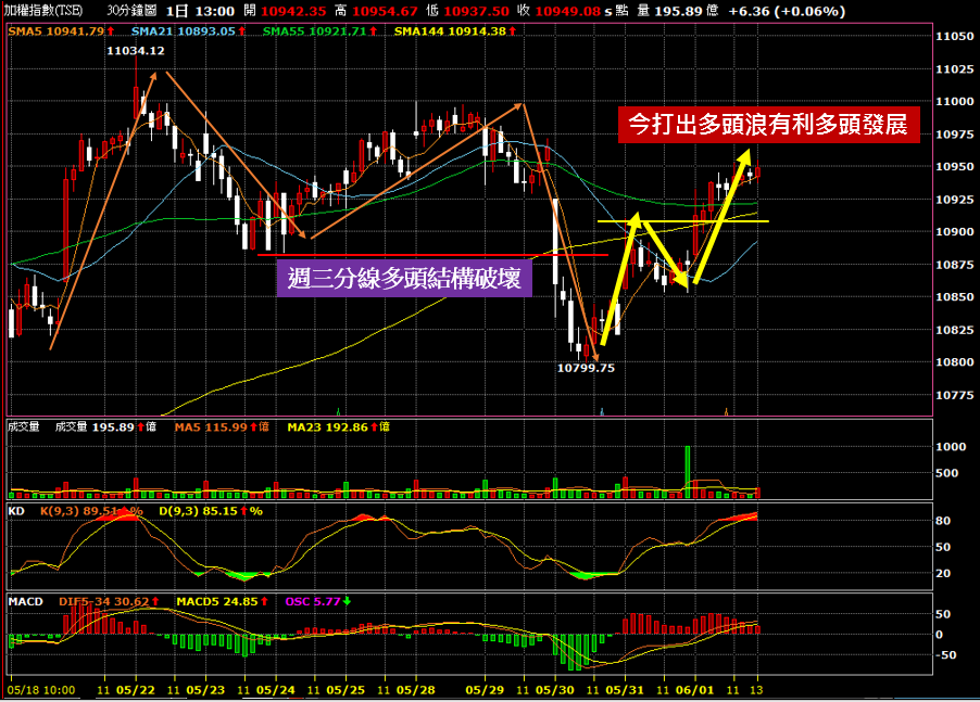 重點是今天站上了週三量增大跌黑K的高點10925,