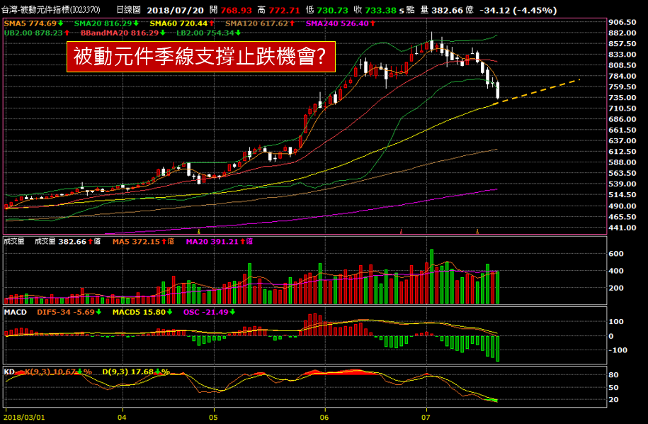 被動元件的風險我想不用再多說了,連續轟炸大家超過兩週,是否記得昨天說過也並不建議大家追空被動元件?除了基本面尚佳與消息面嘎空的可能外,就是操作策略上,停損空間並不好設定,拿最弱勢之一的2478大毅來說,今天已經跌到05/15高點的一個小型支撐,且季線仍上揚,下週若有撐住反彈,甚至又放利多強彈,做空就累了,而且6173信昌電也快到季線,2492華新科也在季線附近,從被動元件指數來看,也剛好修正到了季線附近,若接下來有撐,做空的其實也討不到便宜。