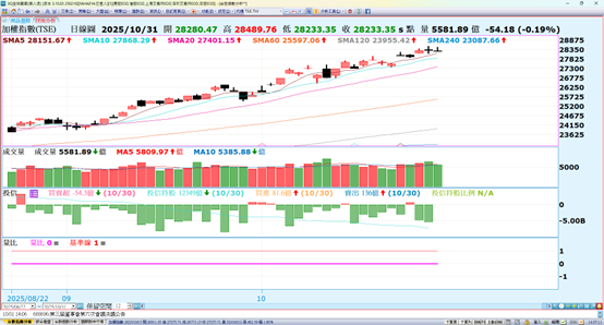 美股昨天在消化聯準會主席鮑爾淡化 12 月降息預期,加上Meta提升資本支出的計畫,引起市場對投資報酬率的懷疑,昨天股價大跌 11%,拖累美股四大指數表現。不過蘋果及亞馬遜盤後公布上季財報,營收和獲利都超越市場預期,美股盤後盤上漲1.1%。