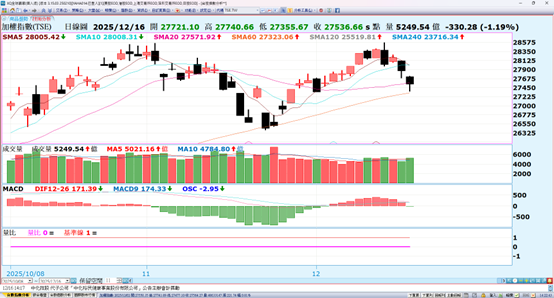 美股等待今晚公布的 11 月就業報告,以及本週一連串經濟數據,以協助市場評估 2026 年降息預期。美股四大指數未反彈續跌,目前高科技股與費半面臨月線保衛戰若破月線美股整理期將會拖長。
