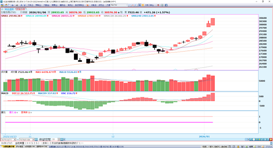 美國對委內瑞拉採取行動後,雪佛龍、埃克森美孚、康菲公司等石油巨頭受資金追捧加上金融類股走高,帶動美股四大指數上漲,道瓊創歷史新高、費半盤中創歷史新高後留上影線,結構來看股市的上漲主要以部分族群為主,而AI族群則是以記憶體面板與台積電為主,美股與台股結構雷同資金過度集中化,這也造成指數走多但個股卻多空分歧