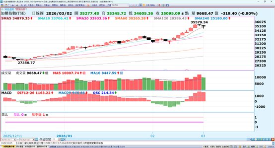 台股馬年開紅盤再度創下35579.34點新歷史,年後內資資金回籠。後續會視行情狀況調整持股配置,策略上將針對族群資金移動,符合量線價公司進入好球帶揮擊的個股做評估,並嚴控進出節奏因應。