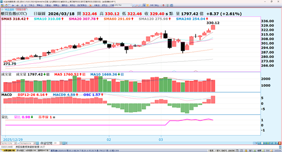 台股馬年開紅盤再度創下35579.34點新歷史,近期因美伊事件變數,行情出現如預期修正到接近季線的狀況,上週一二時間轉折點已大舉進場,近期國際局勢不佳但上櫃已經連七漲創下新高,後續策略仍會針對族群資金移動,符合量線價公司進入好球帶揮擊的個股做評估,並嚴控進出節奏因應。