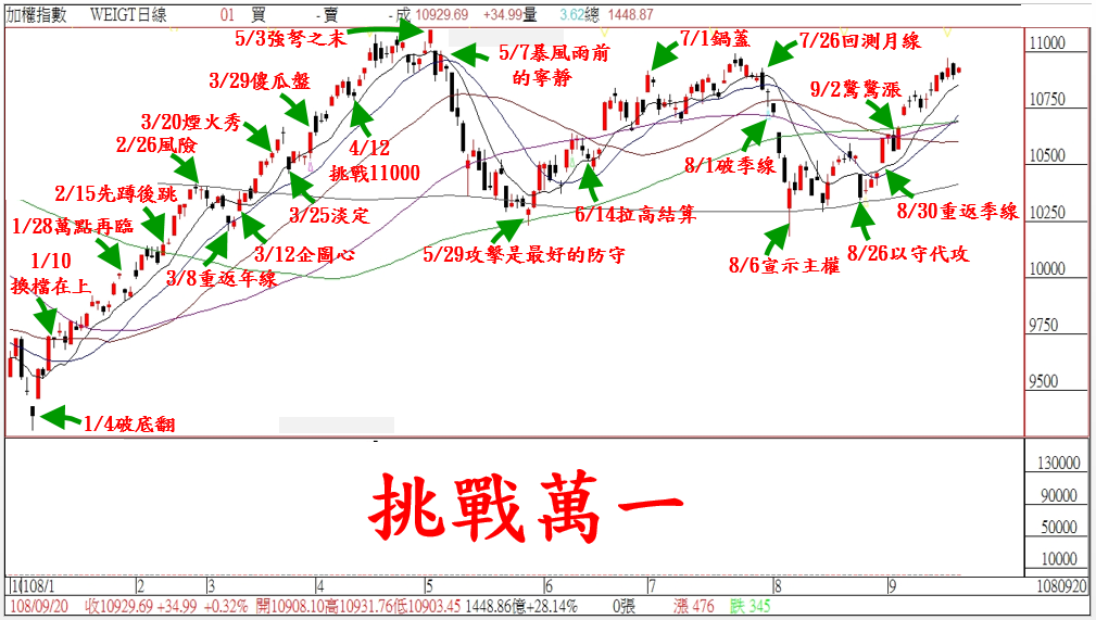星期三台指期的激情拉高後,連續二個交易日在『後遺症』的影響下;加權指數就在10900點附近狹幅遊走。延續我們昨天的規劃…待賣壓結束後,台股可望…『再出發』!!本周成功『拉高結算』後,目前結構依舊有利多方;雖然今天晚上美股面臨技術面轉折,所以不確定的因素較高。但就目前整體結構來看…對於下星期的台股,武傑研判可望直接『挑戰萬一』。