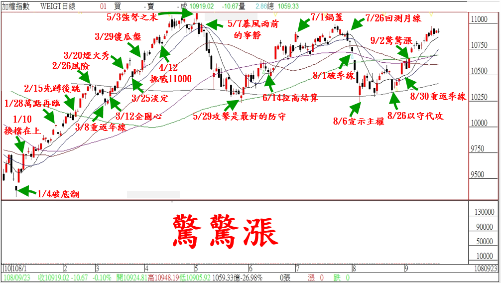 上周五美股技術面的轉折,果然出現比較大大幅回檔修正;因此壓抑今天亞股的表現。不過,對於國際股市的影響,我們預期只是短期一、二個交易日壓抑;從今天台股的表現來看,不難發現在權值股休息之際,內資主導的中、小型股立即接棒演出。顯示目前多頭的『企圖心』,並沒有因為『中美貿易戰』的雜音而改變。延續我們上星期五的規劃…就算美股修正,對指數短線有所壓抑;預料台股依舊還是會維持『驚驚漲』的格構,本周多頭目標還是…『挑戰萬一』!!