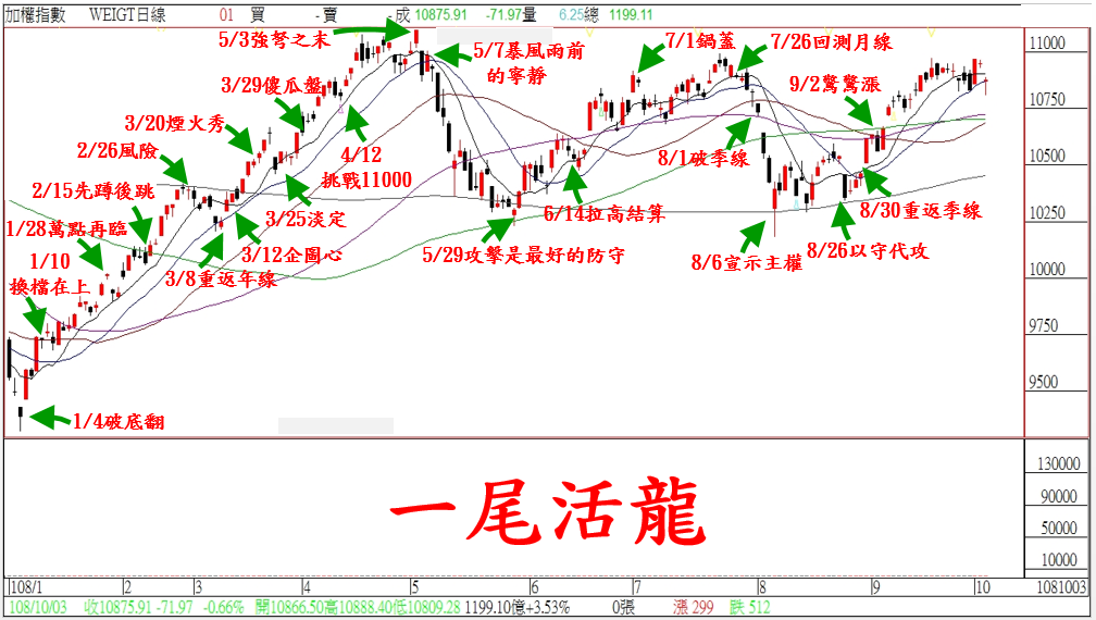 在美股的重挫下,市場空頭言論又開始快延燒;不過,武傑還是要說:『風沒動…是投資人的心在動』!!上星期在『短多下車』後,我們對盤勢的規劃就是『區間震盪』,而震盪的區間就是10800-11000點。所以對於美股的大跌,我們只是視為『利空測試』;測試10800點的支撐力道,目前看來…就不用我多說了。總歸一句…關前整理尚未結束,這裡愈多利空,反而有助於浮額的清洗;預估在籌碼清洗乾淨後,台股又是『一尾活龍』!!