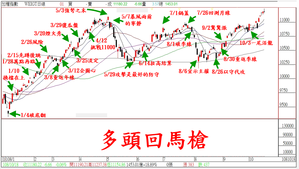 台北股市早盤小漲+3點開出,在台積電的拉高下,指數一度上漲+50點,再度改寫波段新高;但是受到高檔賣壓持續放大下,指數震盪走低,終場小跌-6點作收,收在11180點,成交量1453億。