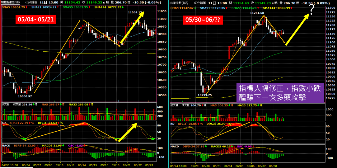 「目前分K的位階跟05/15那天的修正是一樣的,