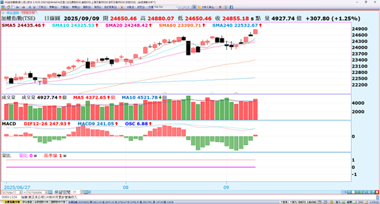 美股四大指數都出現上漲,其中高科技股盤中曾再創歷史新高,費半僅差98點也將創新高。帶動美股上漲的主要原因還上周五公布的 8 月非農就業數據慘澹。使得聯準會9/17降息幾乎是百分百,且未來都還有降息的機會。